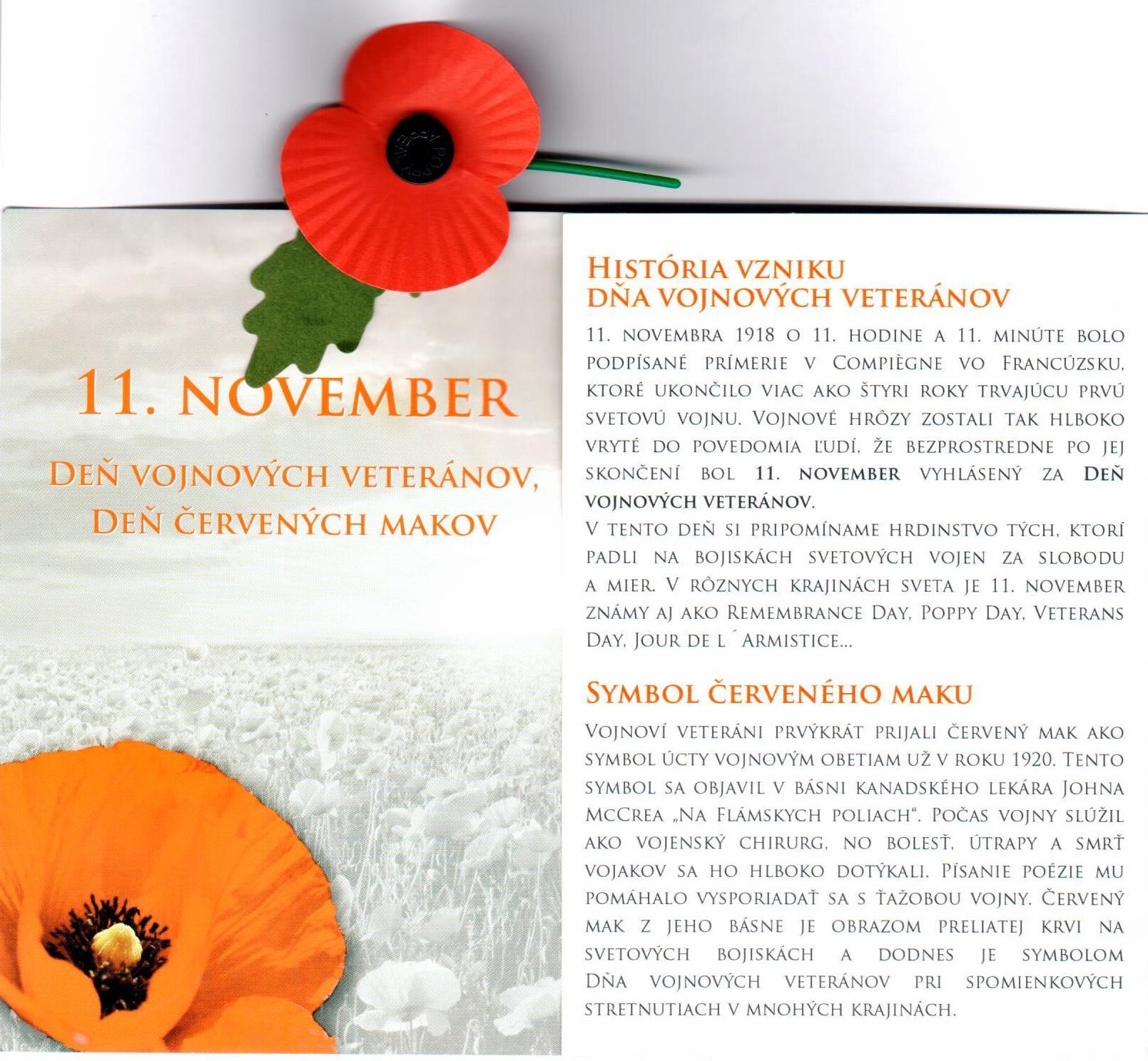Medzinárodný deň vojnových veteránov - 11.11.